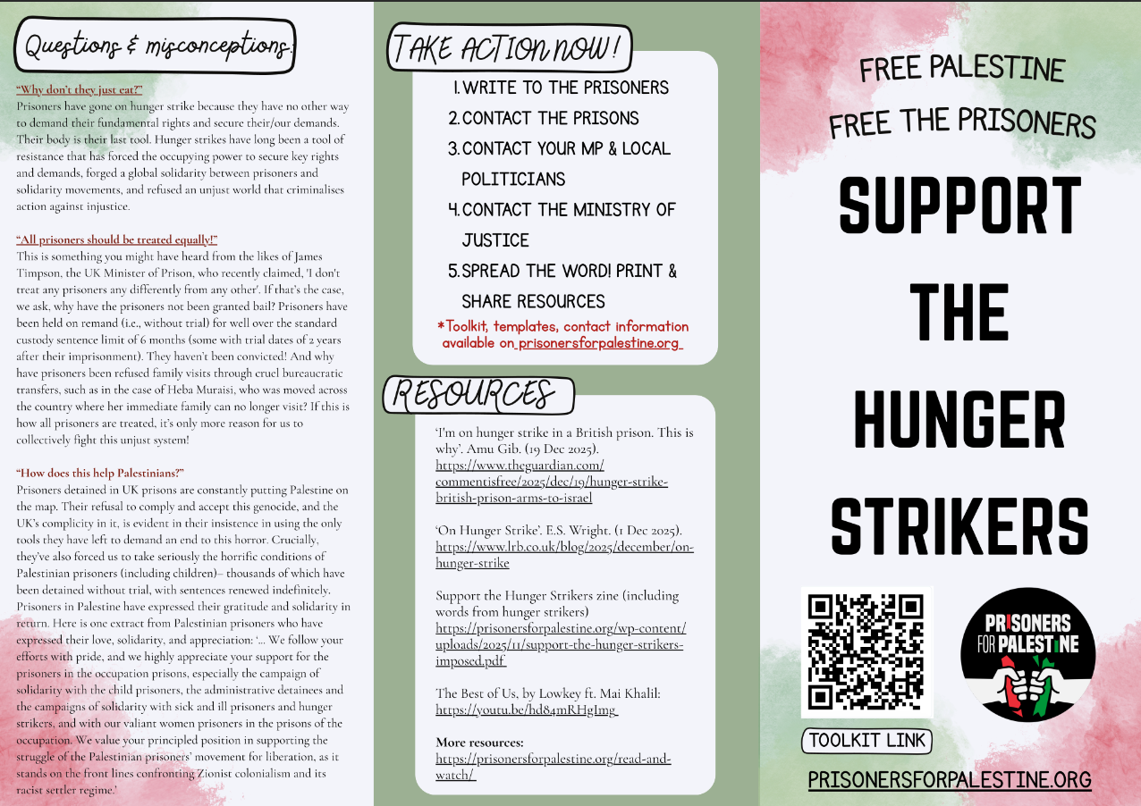 Take action now with our toolkit to support the hunger strikers. The toolkit contains a list of targeted actions in priority order, templates you can copy-paste, and details of demos happening in the UK and internationally.