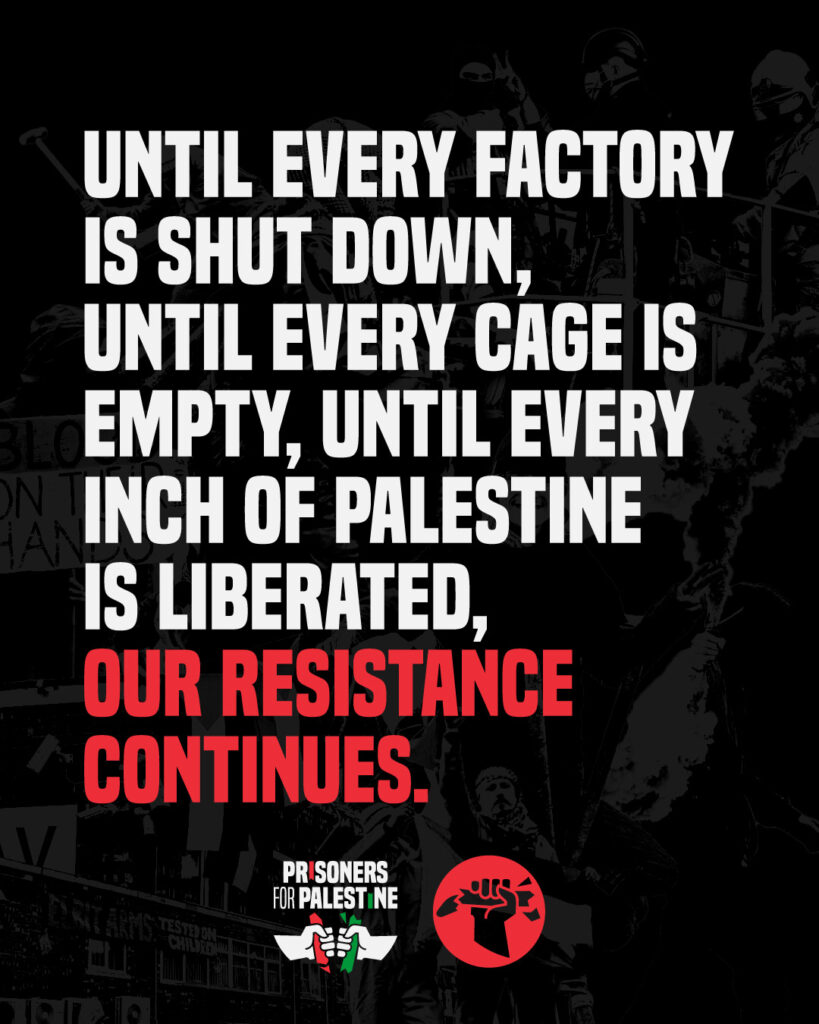 Until every factory is shut down, until every cage is empty, until every inch of Palestine is liberated, our resistance continues.