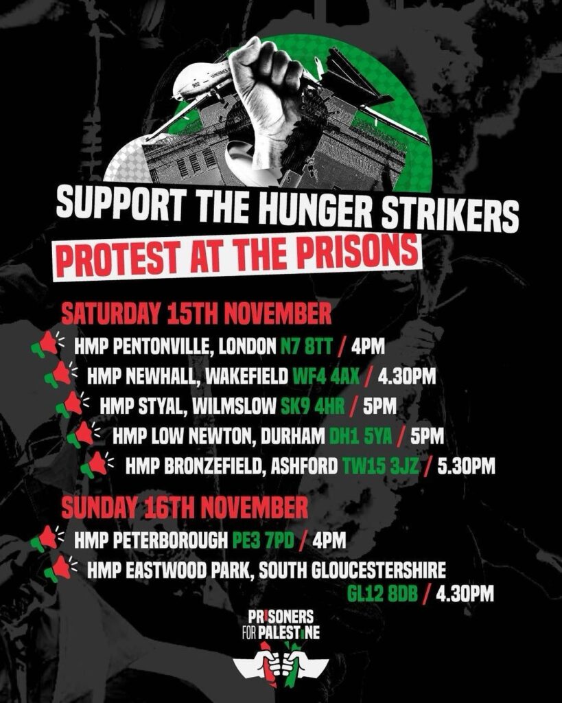Solidarity to all prisoners held in UK dungeons! This weekend we call on you all to join us in this cross city solidarity action taking place across multiple UK prisons.